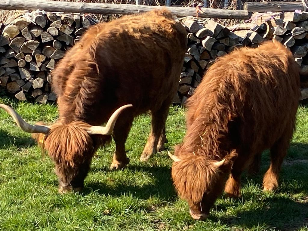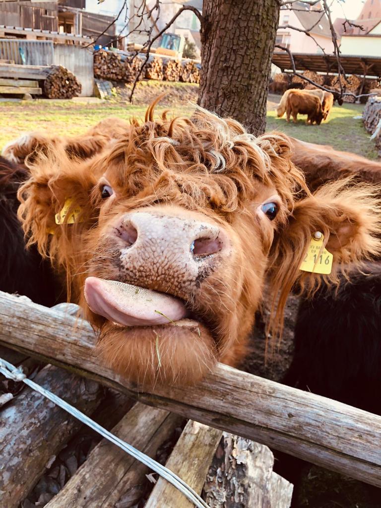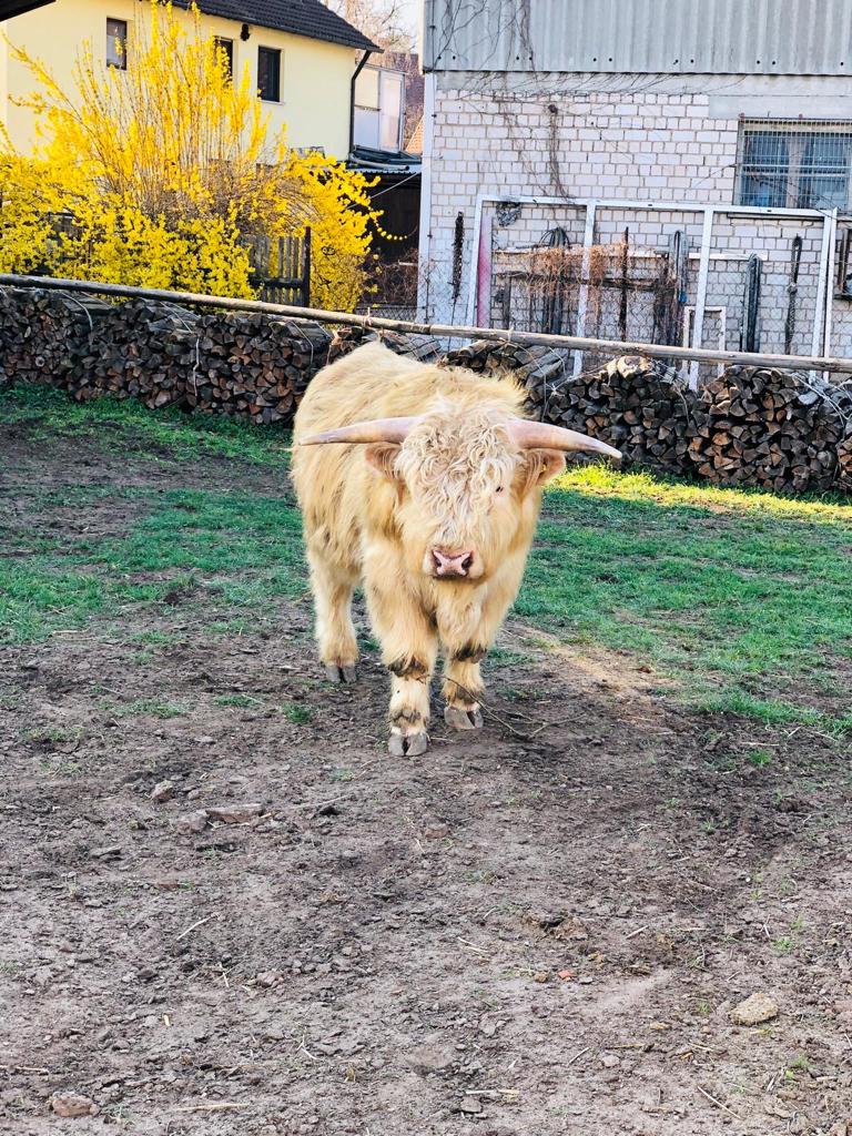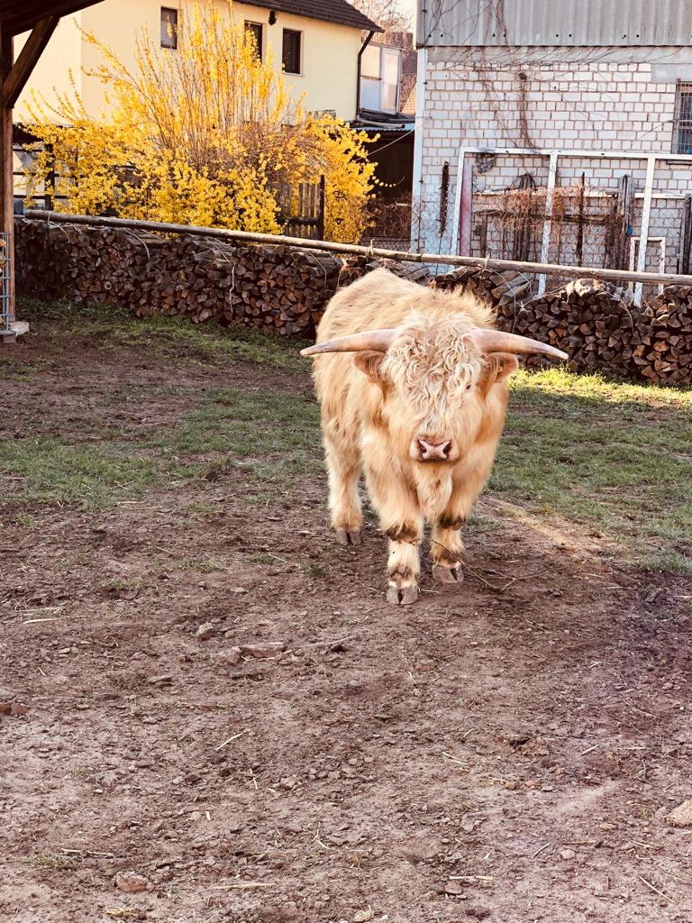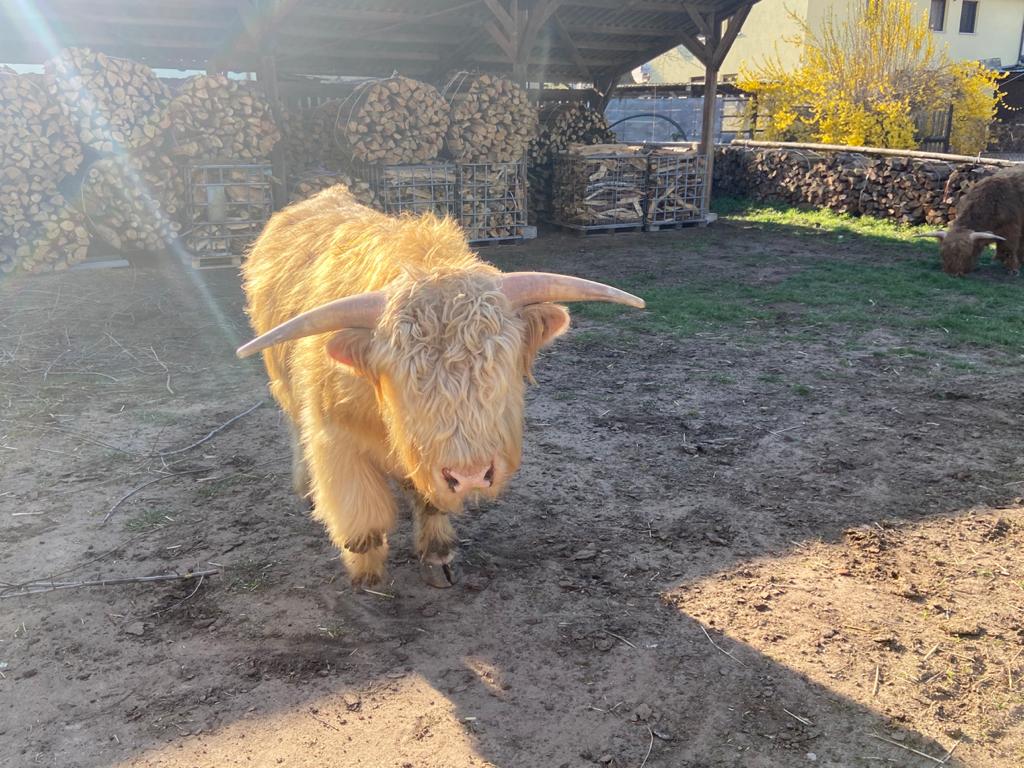 Unser Betrieb befindet sich im “Gässla”, im Herzen von Vach, neben der St. Matthäus-Kirche. Wir sind ein generationenübergreifender Familienbetrieb, dem die Landwirtschaft schon immer eine Herzensangelegenheit ist. Ende November 2018 haben die Highlands schottischen Wind in den Betrieb gebracht. In unserer Herde fehlte der männliche Part, weshalb wir nach dem perfekten Bullen gesucht haben. Allerdings wurden aus dem “einen Bullen” plötzlich sieben weitere Mitglieder. Somit wuchs unsere Herde in kürzester Zeit auf stolze elf Tiere. Und die Herde wächst und wächst… Unsere Tiere sind prima Gärtner und pflegen renaturierte Flächen. Dort leben sie artgerecht in extensiver Umgebung. Auf unserem Hof gibt es allerdings nicht nur Highlands zu bestaunen, sondern viele Arten mehr: • Fränkisches Fleckvieh • Uckermärker • Charolais • Limousin • Angus